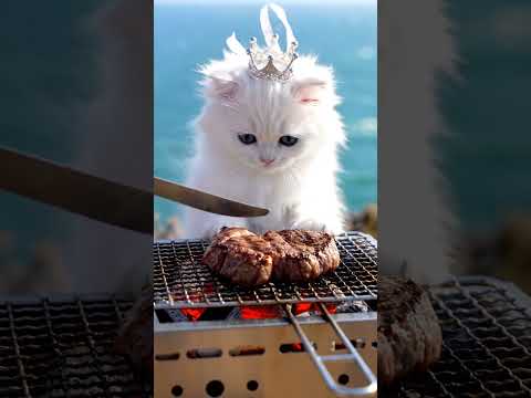 A Super Fluffy Kitten is Cooking Grilled Beef Tenderloin